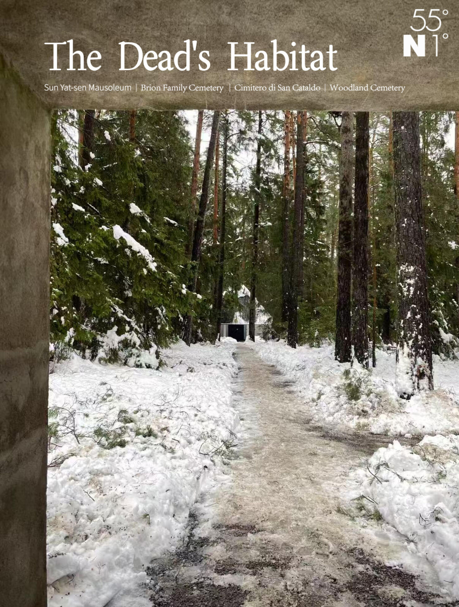 Beyond the cultural traditions across continents, we also explore different "realms of the departed," revealing the profound yet simple emotions behind them—from honoring individuals and families, to contemplating humanity, and ultimately, the universe.We introduce:The Sun Yat-sen Mausoleum (China), which draws from ancient Chinese imperial tomb design, using symmetrical layouts, sacred pathways, and staircases to connect key structures along a central axis—harmonizing the grand mausoleum complex with the surrounding mountain landscape.The Brion Tomb (Italy), a contemplative space designed with wandering pathways, canals, platforms, and reflecting pools, creating a serene yet enigmatic atmosphere.The San Cataldo Cemetery (Italy), reimagined as a symbolic dialogue between urban order and mortality, where architecture itself speaks of life and death.The Woodland Cemetery (Sweden), where nature takes the lead—gentle slopes, native plants, and subtle axes weave a landscape of quiet reverence for both the departed and the living.